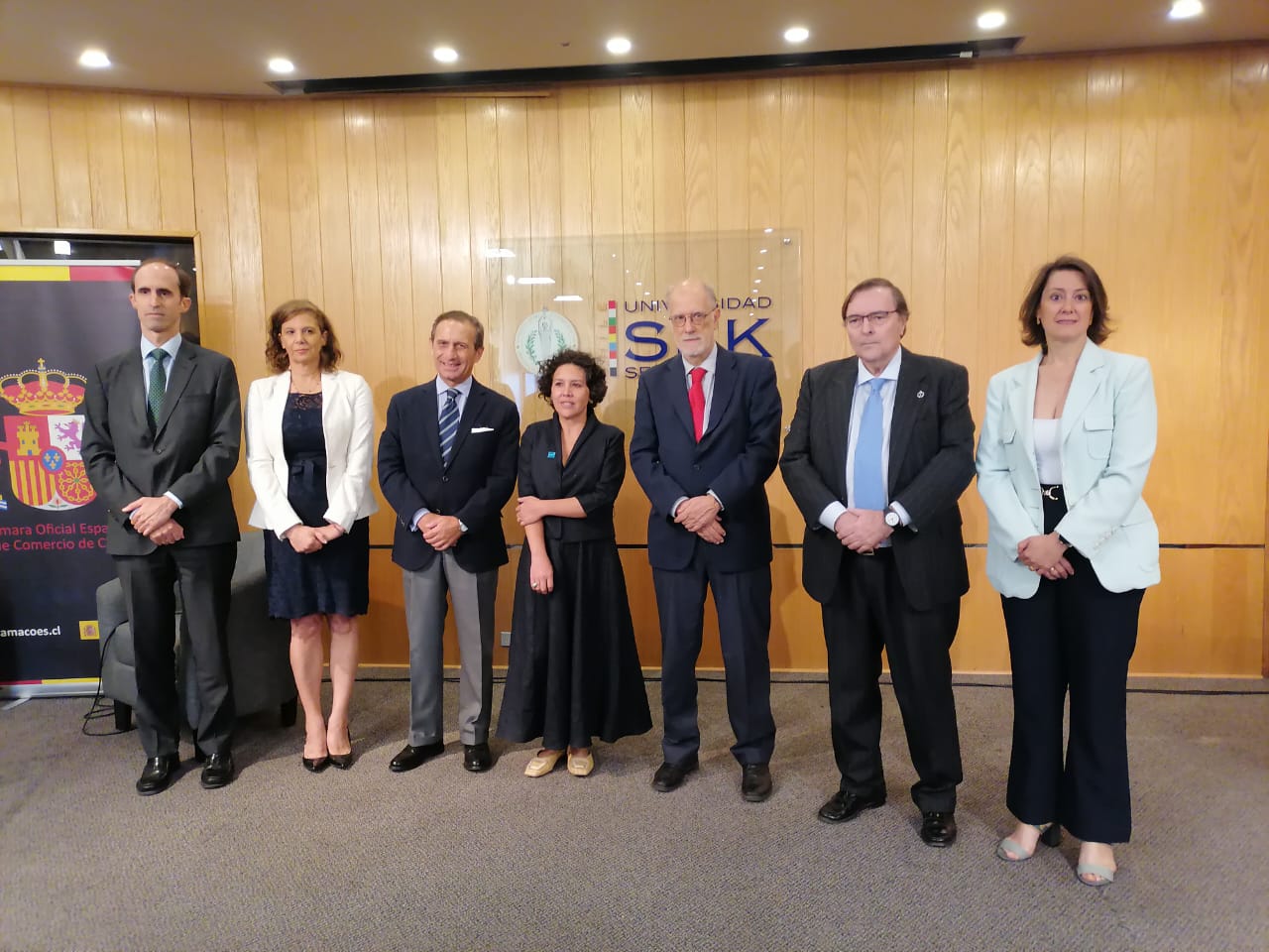 El conversatorio contó con la participación del señor Miguel A. García Moreno, presidente de CAMACOES; don Rafael Garranzo Embajador de España; el señor Alvaro Denia, Consejero Jefe de la Oficina Económica y Comercial de la Embajada de España en Chile; doña Eva Flandes Aguilera, vicepresidenta de CAMACOES y Rectora Universidad SEK; Alejandra Isbej, directora de DEVA Chile y directora de CAMACOES.