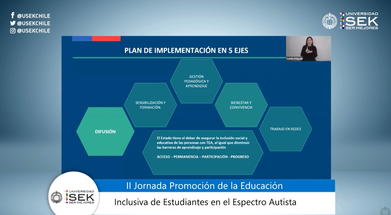 La jornada contó con la colaboración de la Corporación de Desarrollo Social de la Municipalidad de Providencia. El inicio fue a las 09:30 hrs. con las palabras de bienvenida de la Decana de la Facultad de Educación y Cultura de USEK, señora Vera González de Castro, quien destacó la importancia de la educación inclusiva y su impacto en la sociedad.