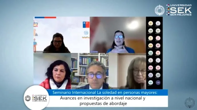 En colaboración con el Servicio Nacional del Adulto Mayor (SENAMA) y el Programa Iberoamericano de Cooperación sobre la situación de las personas adultas mayores, Universidad SEK realizó el seminario internacional «La soledad en personas mayores: avances en investigación a nivel nacional y propuestas de abordaje». Este evento, realizado de manera online con más de 300 participantes conectados a nivel nacional e internacional, tuvo como objetivo principal abrir un espacio de diálogo y reflexión en torno a la situación de soledad que enfrentan las personas mayores en la región.