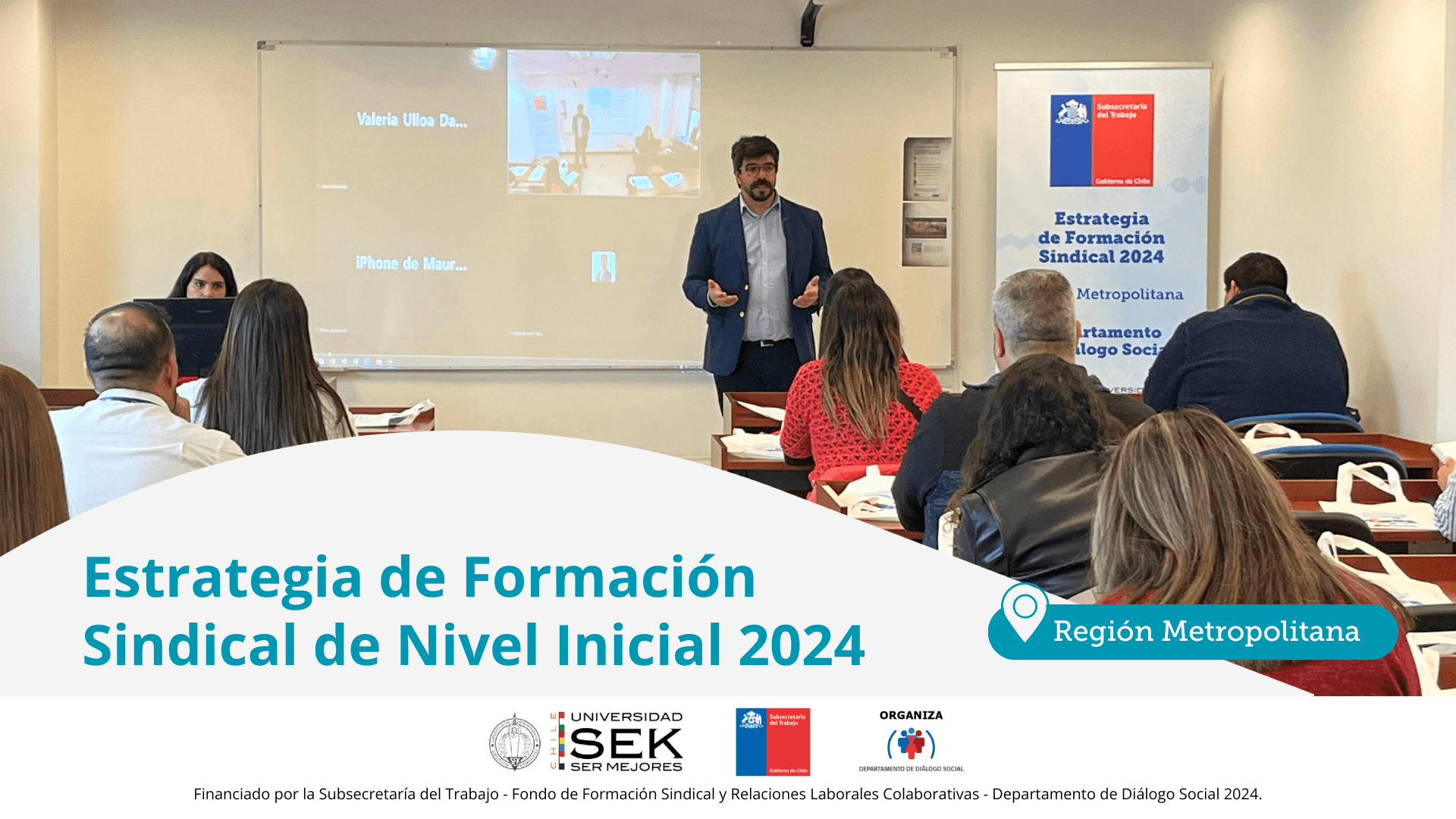 Esta iniciativa, financiada por la Subsecretaría del Trabajo, Programa de Dialogo Social, contó en su evento inaugural con la participación de Francisco Rivera, Jefe del Departamento de Diálogo Social; Nicolás Farfán, Director de Formación Continua de la Universidad SEK; y las y los alumnos que asumen este importante desafío de capacitación.